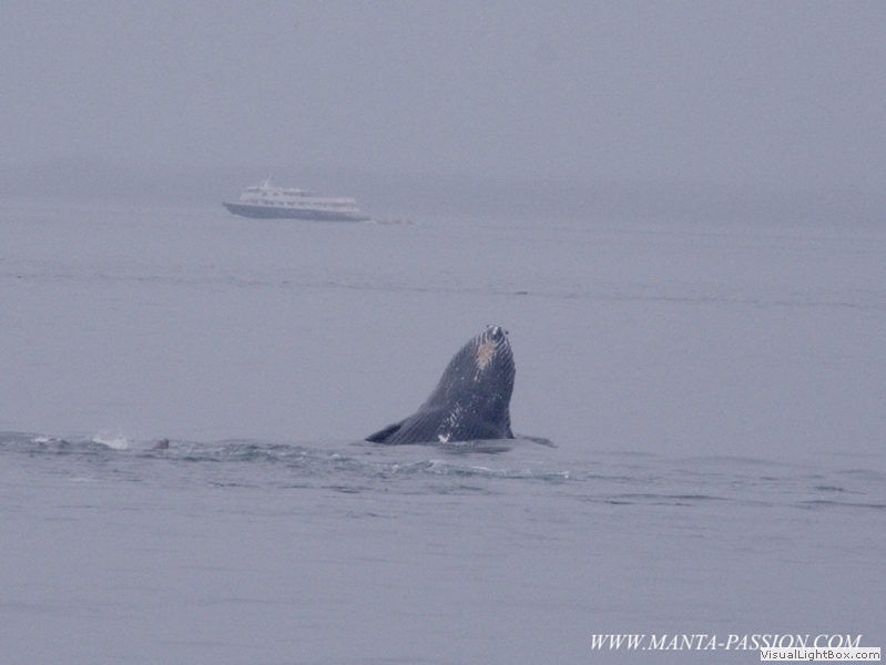 temps un peu couvert, par le ballet des baleines à bosse et des Lions